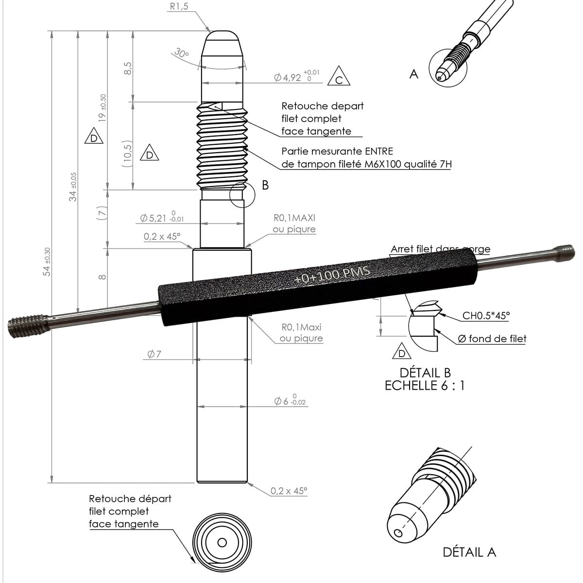 Un plan est soumis en fonction du besoin du client, afin de définir précisément les caractéristiques du tampon fileté à fabriquer.